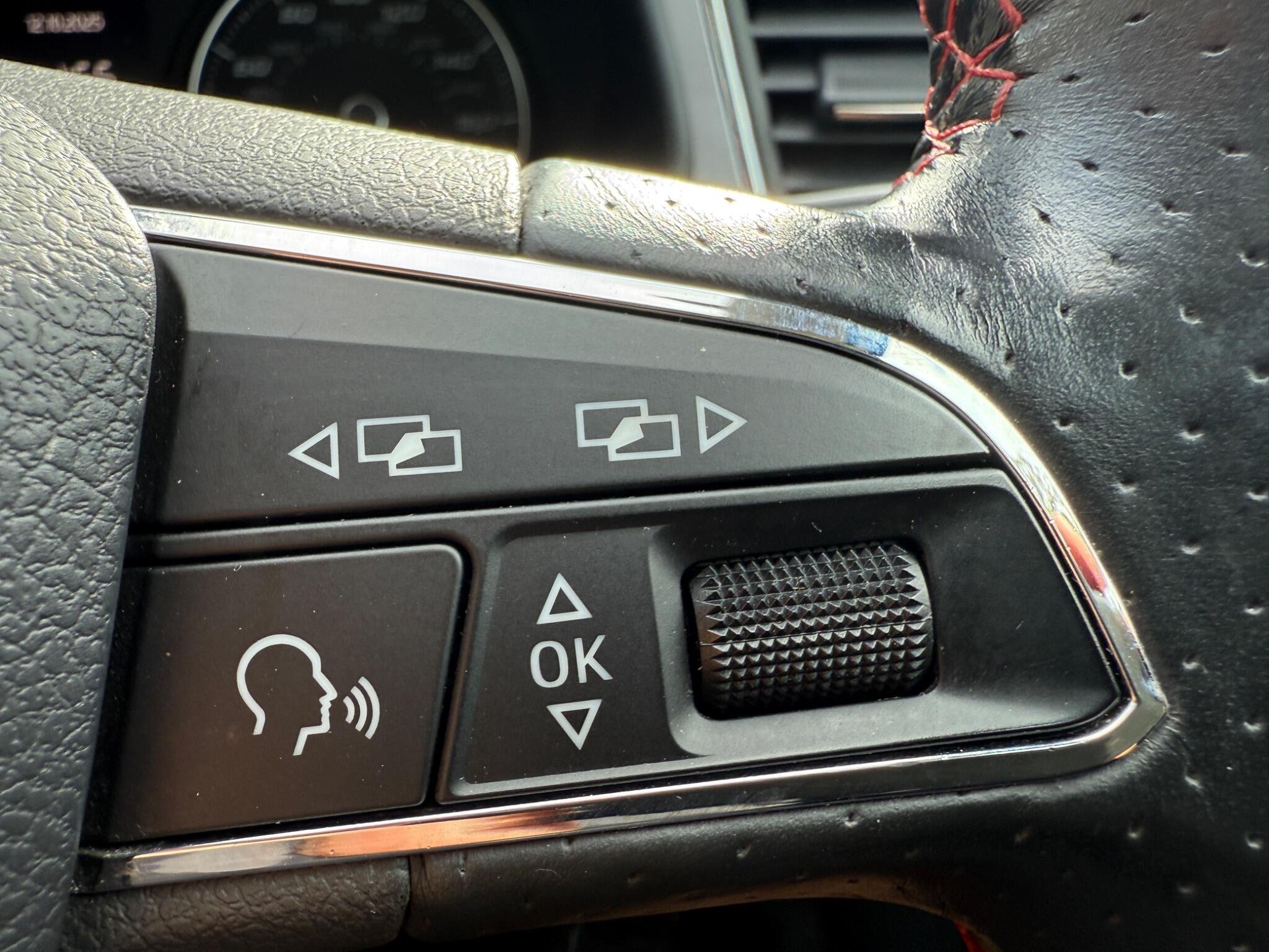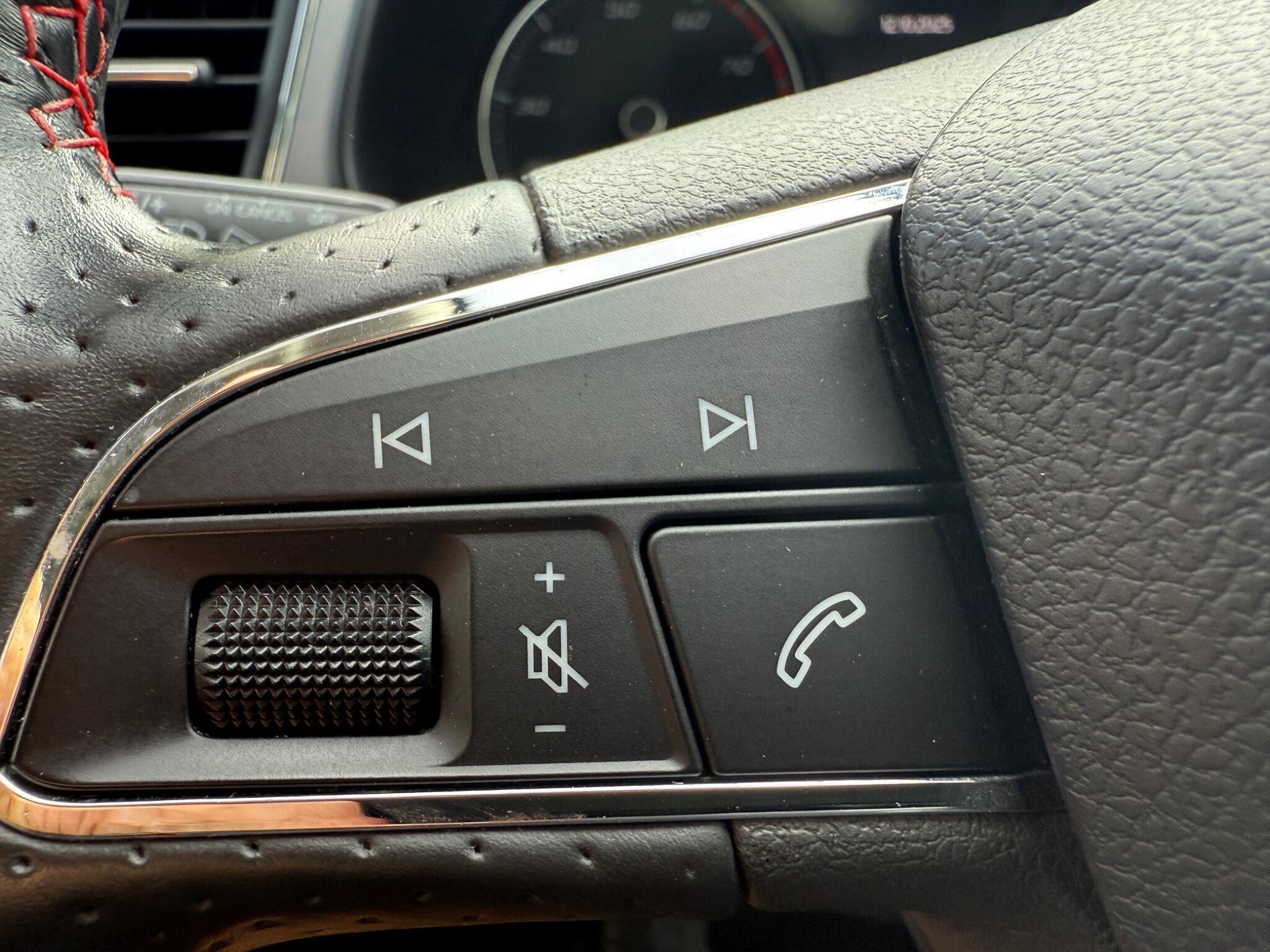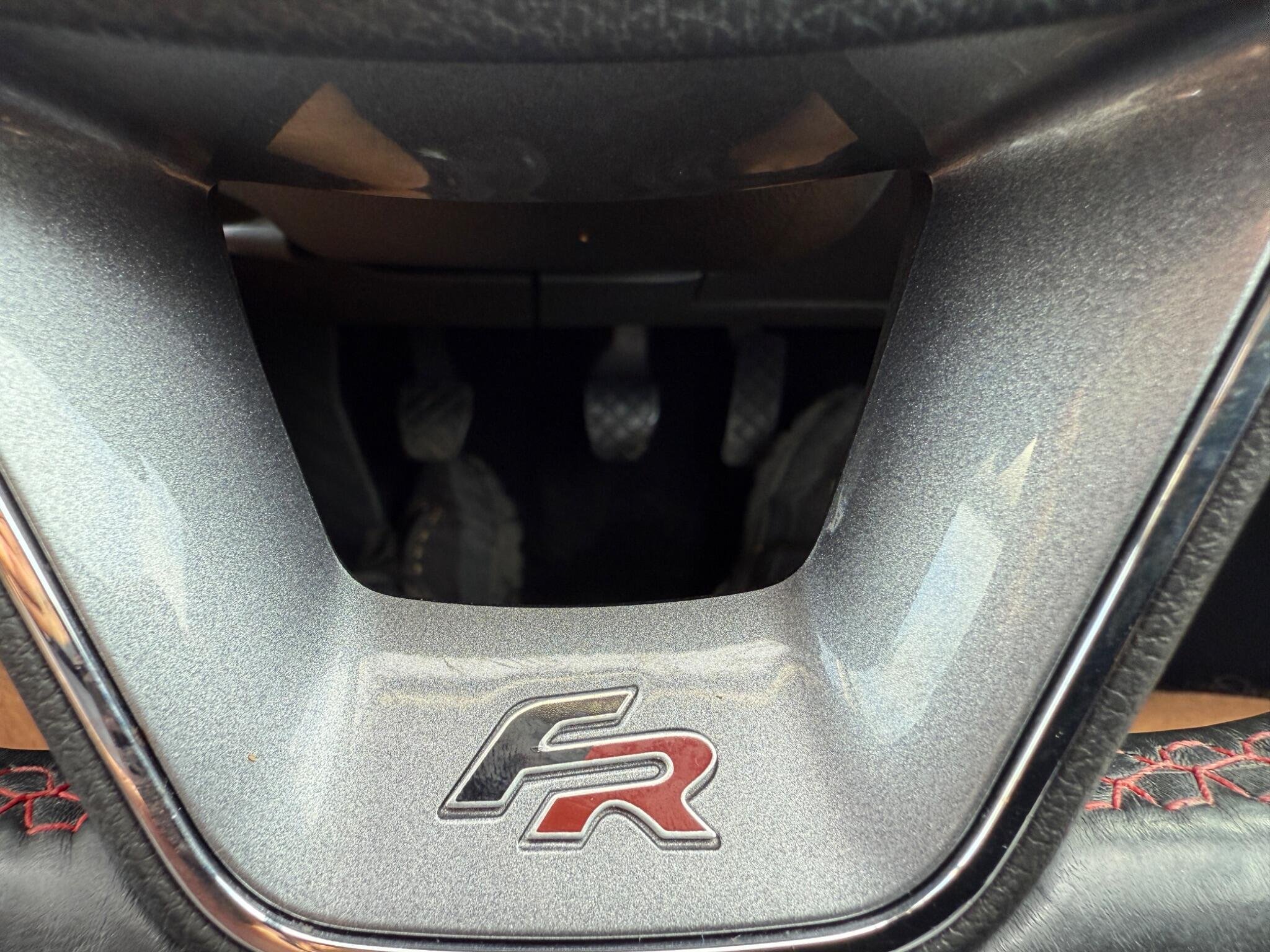 - Steering Wheel - Flat-Bottomed Perforated Leather with Red Stitching and FR Logo